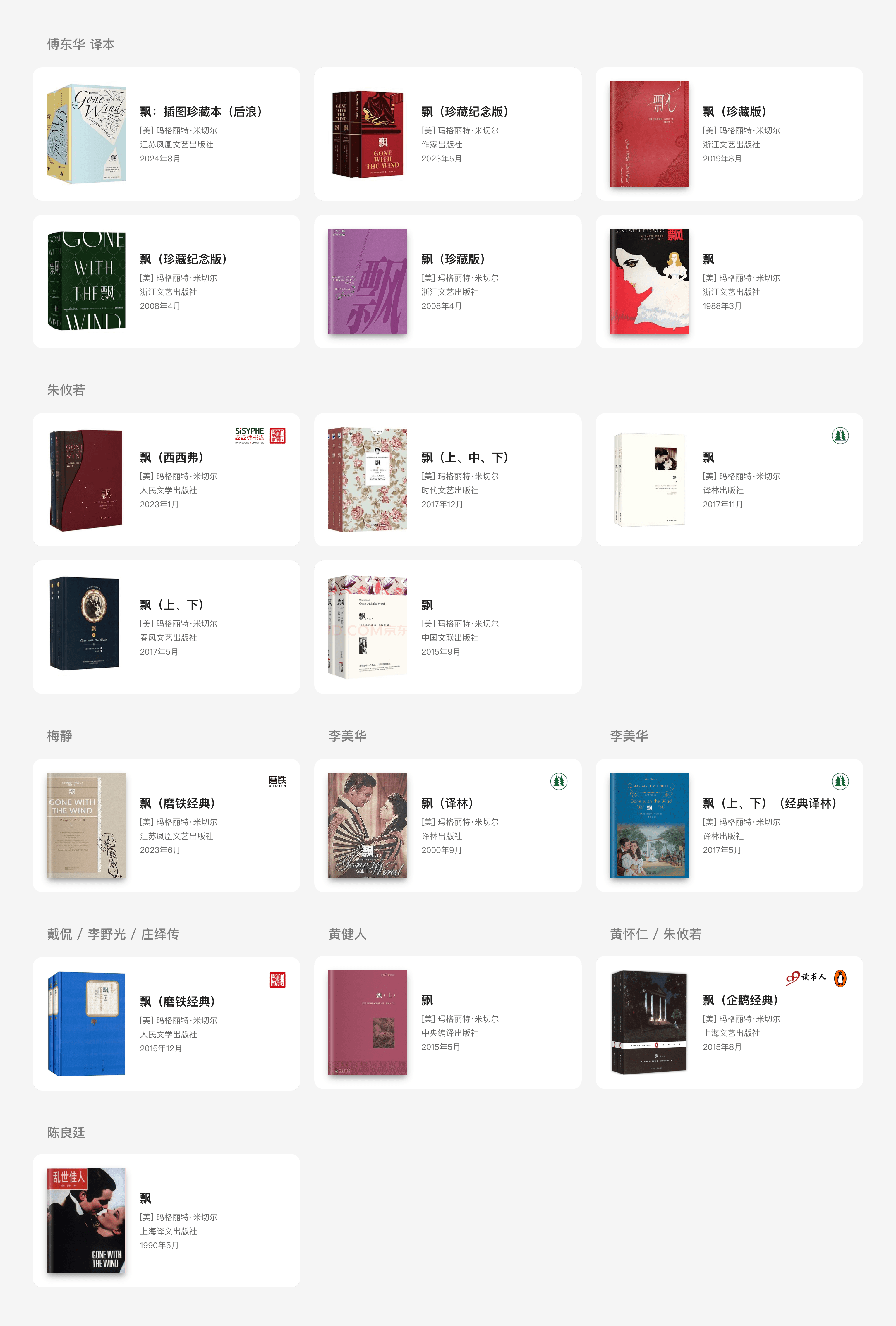 在不同的见解中,有一套版本被频繁提到:上海文艺出版社、企鹅经典、黄怀仁与朱攸若合译的《飘》。